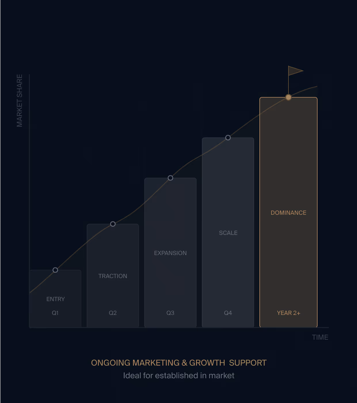 From your first strategic conversation through to market leadership, we're with you. You get continuity, institutional knowledge, and a partner who understands your business deeply because we've been there from day one.